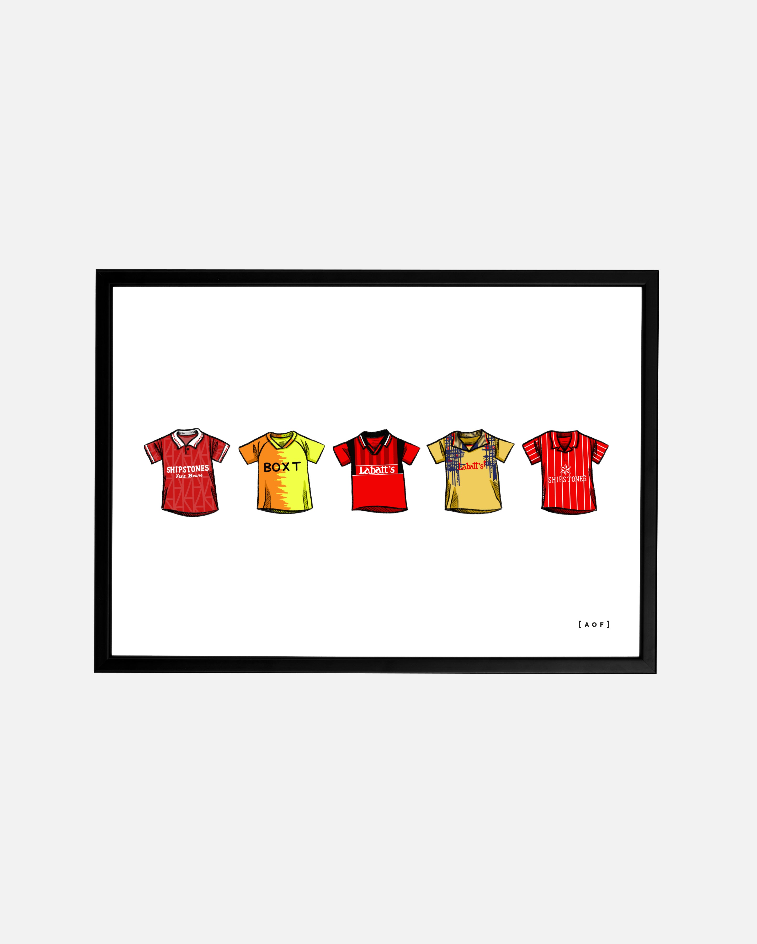 - Design: A collection of classic Nottingham Forest football shirts as suggested by Reds fans.